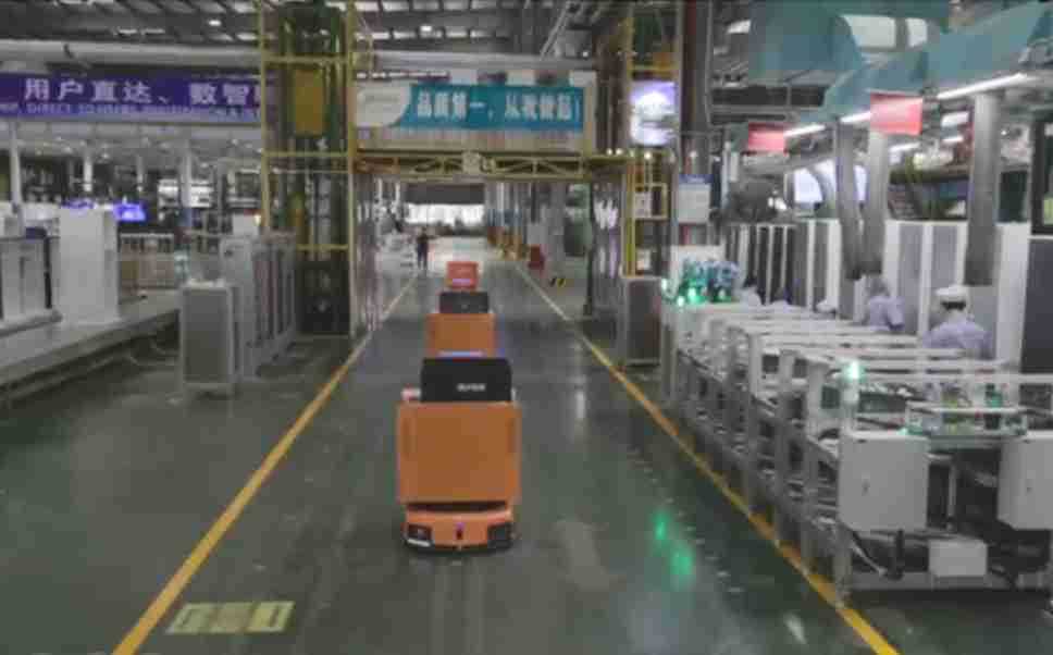 为车载冰箱物流配送打造的智能解决方案,,包含产中物流通过潜伏举升AMR搬运至线边,,产后成品物流智能仓储,,流程包含产中物流智能齐套入库,,线边安灯叫料AMR智能配送至线边,,成品入库、、、出库,,通过无人堆高车机器人,,,智能仓储管理替代人工作业管理,,,,实现更高存储、、更高效率、、、更具柔性化的解决方案。。